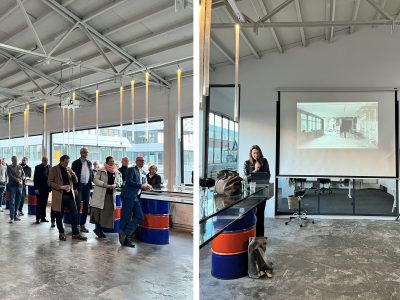Heike-Christin Falkenberg hielt im Rahmen der Veranstaltungsreihe „New Offices in Old Buildings“ einen Vortrag über die Umwandlung der Produktionshalle im Hafen von Scala Glasbau und zeigte dabei spannende Vorher-Nachher-Bilder. Die Veranstaltung bot eine schöne Gelegenheit, unsere innenarchitektonische Gestaltung als einen lebendigen Ort für Austausch, Begegnung und Weiterbildung zu erleben.